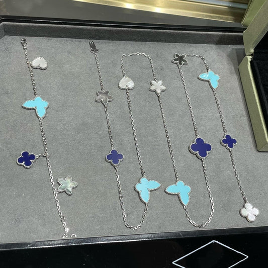 [✨ROSE✨]LUCKY CLOVER SILVER 11 MOTIF NECKLACE