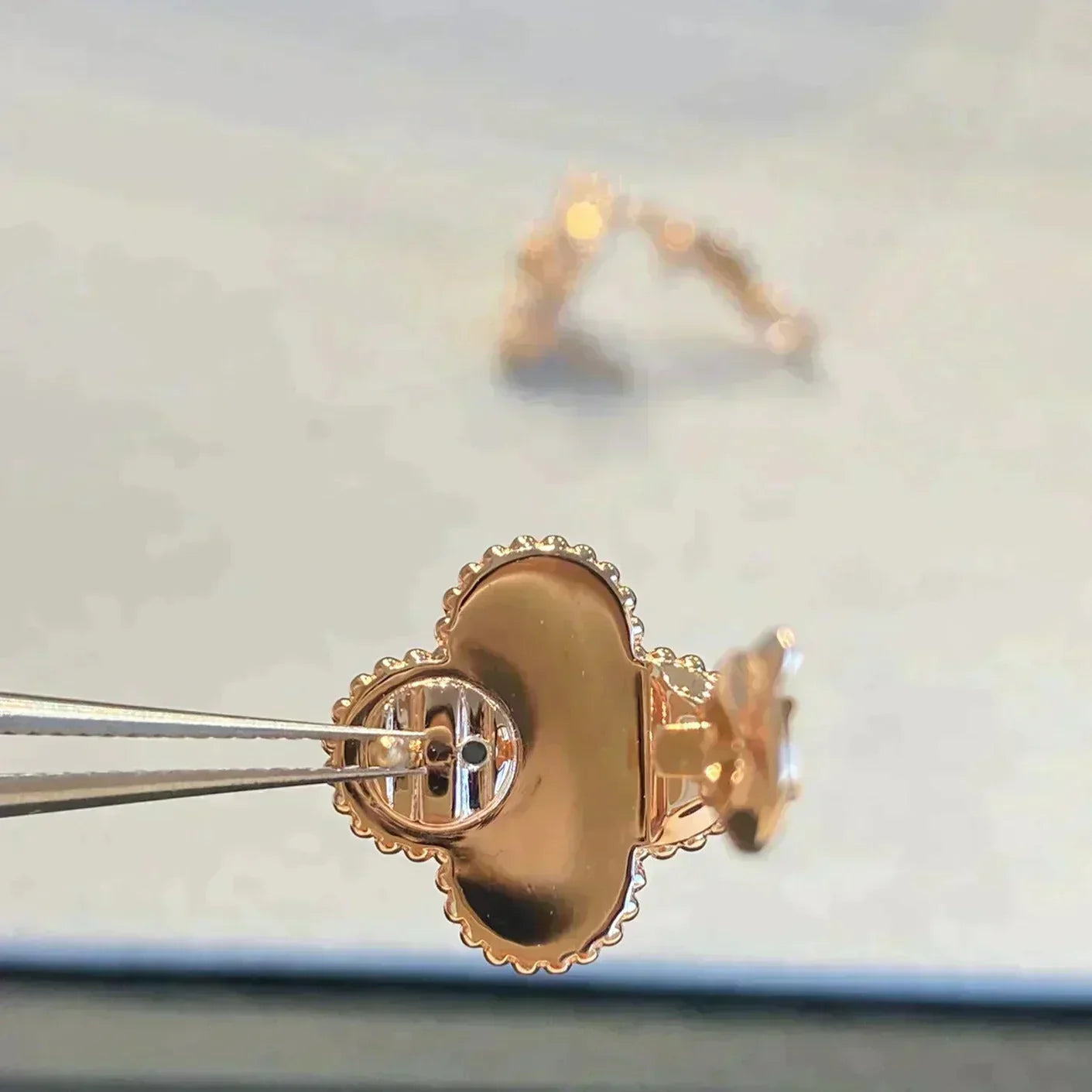 [✨ROSE✨]CLOVER MEDIUM 1 MOTIFS GRAY MOP DIAMOND EARRINGS